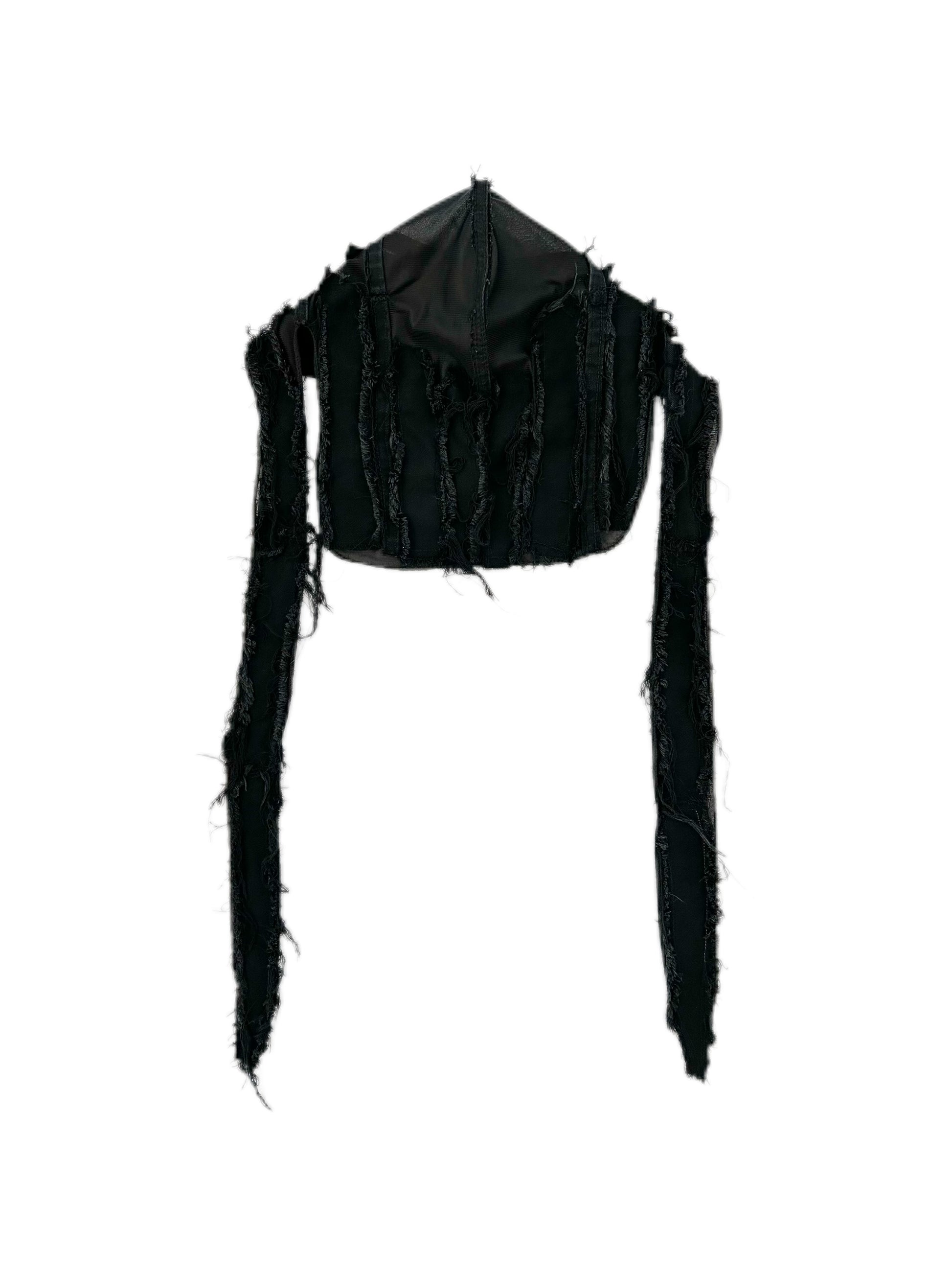 This upcycled denim durag reimagines headwear with a rugged, deconstructed aesthetic. Crafted from repurposed durag, it features raw, frayed edges that accentuate its unique, unfinished design. The extended tail adds flair, while the structured yet flexible material ensures a comfortable and versatile fit.